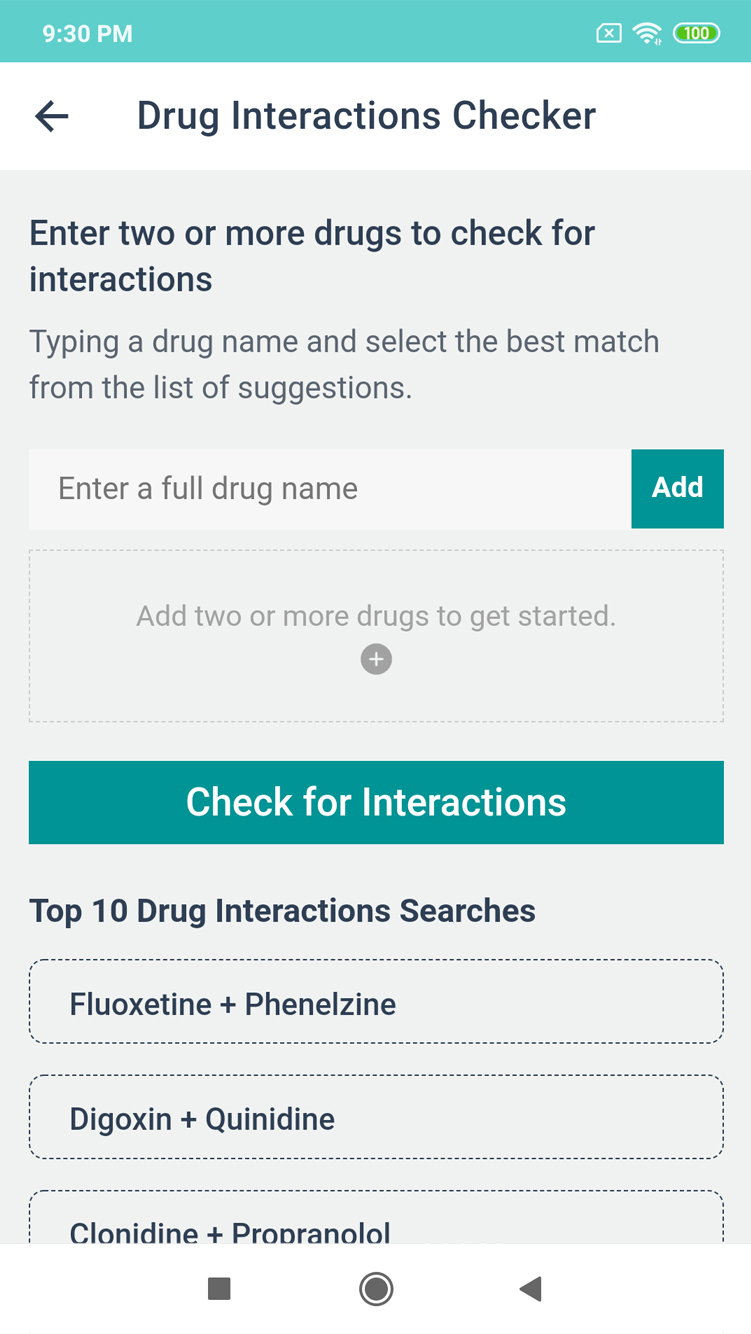 Excellent app. it is easy to use and the information provided is up to date and accurate. Helped me to adjust when to take them. I like having a list of meds.
