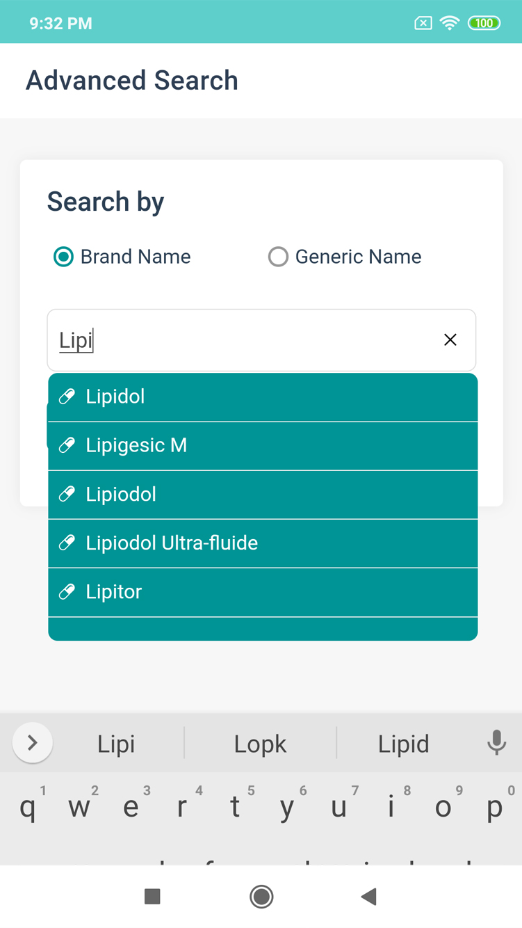Allows you to search medicines
